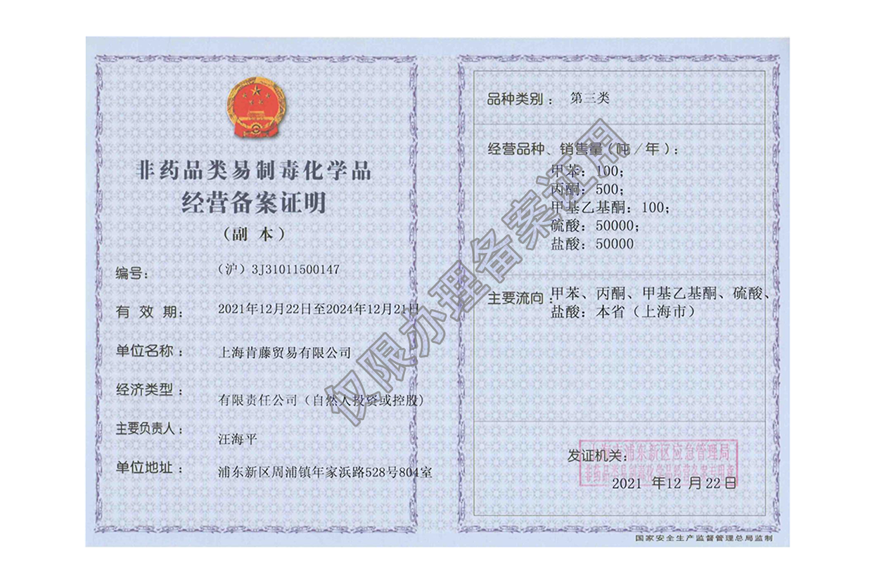 ?上海肯藤貿易有限公司成立于2001年,是一家股份制企 業,業務范圍涉及食品添加劑、日化原料、醫藥原料、石油化工等。主要產品有:鹽酸31%、硫酸98%、液堿.32%.48%),硝酸、雙氧水、抗氧化劑、二氧化硫脲、氯化亞錫、硫酸銅、硫酸鎳、二氯甲烷、甲醇、乙醇等化工原料;食品添加劑類有食品級液堿,食品級鹽酸,食品級雙氧水,維生素C、異維C、阿司巴甜、....公司經過不斷的品種拓展和市場開拓,已經迅速發展成為上海地區最大的化工原料銷售公司之一。
